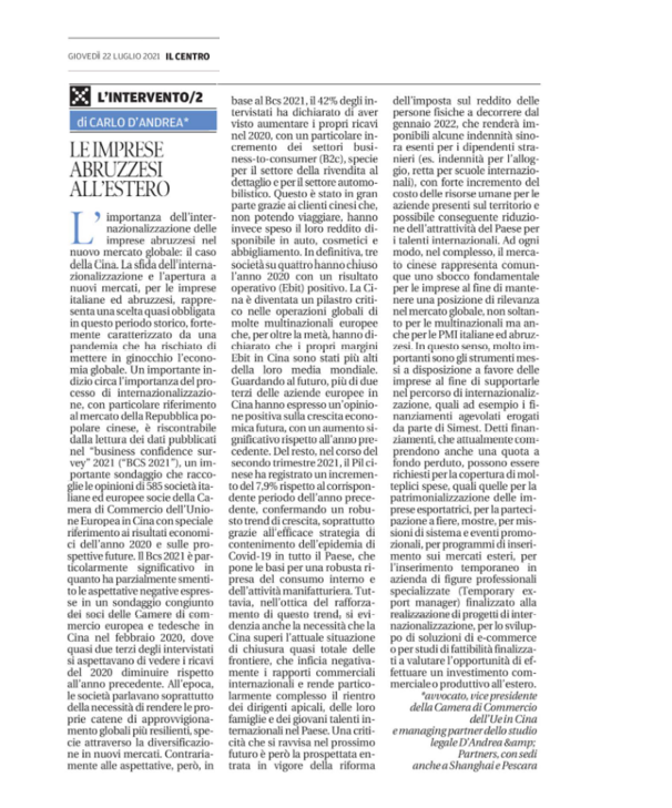 LA CRESCITA DELL’ECONOMIA ABRUZZESE NEL 2023 CON IL RITORNO DELLA CINA