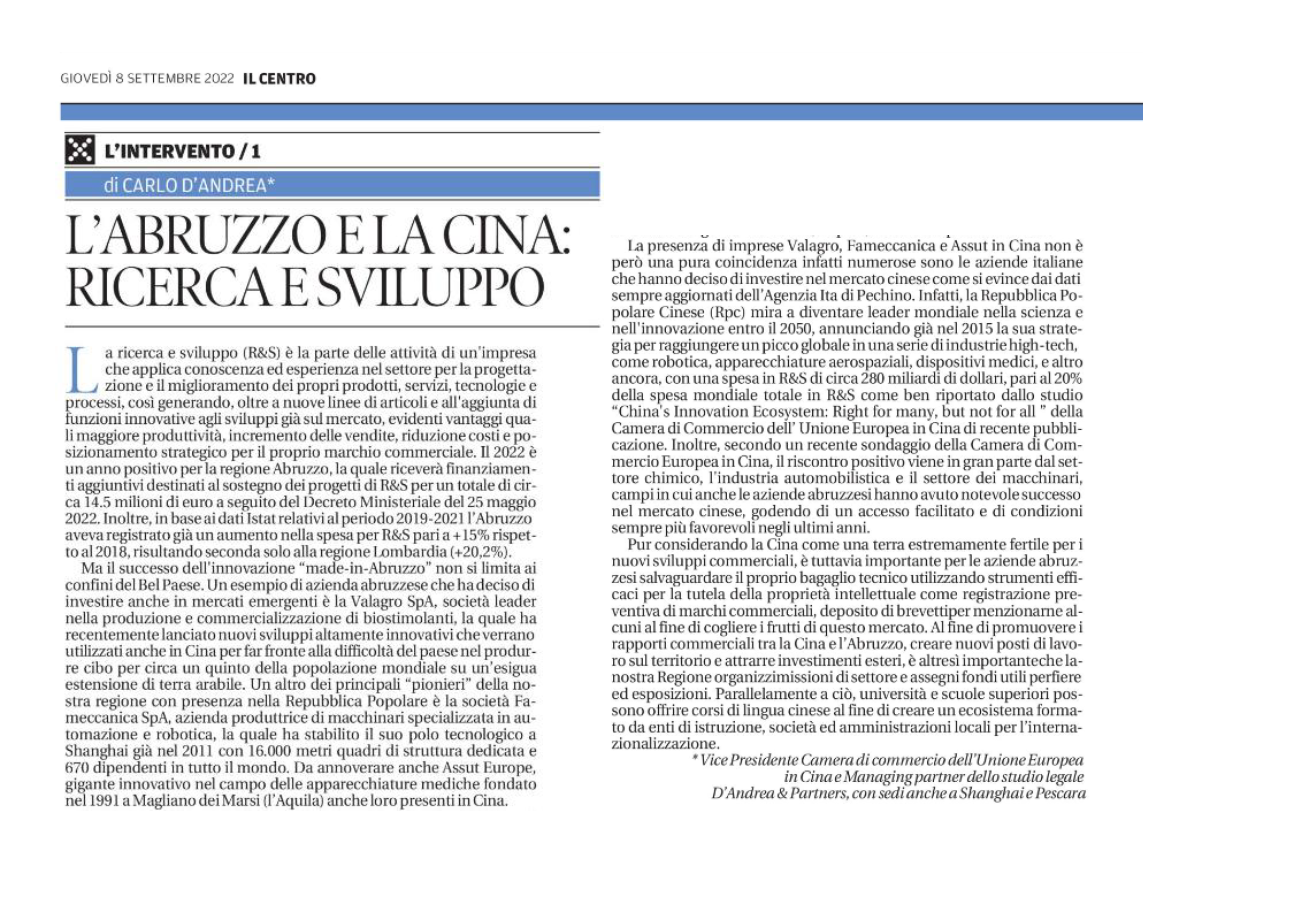 Ricerca e Sviluppo abruzzese in Cina
